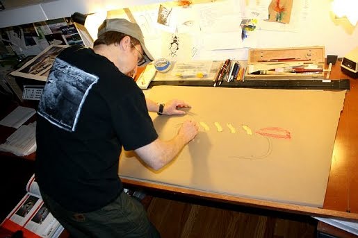 Recently Jeff Kennedy posted on his blog, Drawing Flies 365, a slideshow showing the process of drawing a Woolly Worm that he did with charcoal and NuPastel on kraft colored shipping paper.
